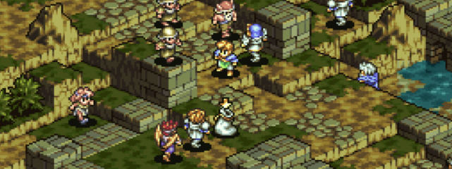 主人公(プレイヤー)は兵団を組織し、出会う敵と戦闘を繰り返していきます。戦闘は基本的に8名~10名前後のユニット同士の衝突です。タクティクスオウガでは、基本的に戦闘中に死亡したユニットは永遠に死亡となります。教会で生き返すことも、フェニックスの尾で復活させることもできません。